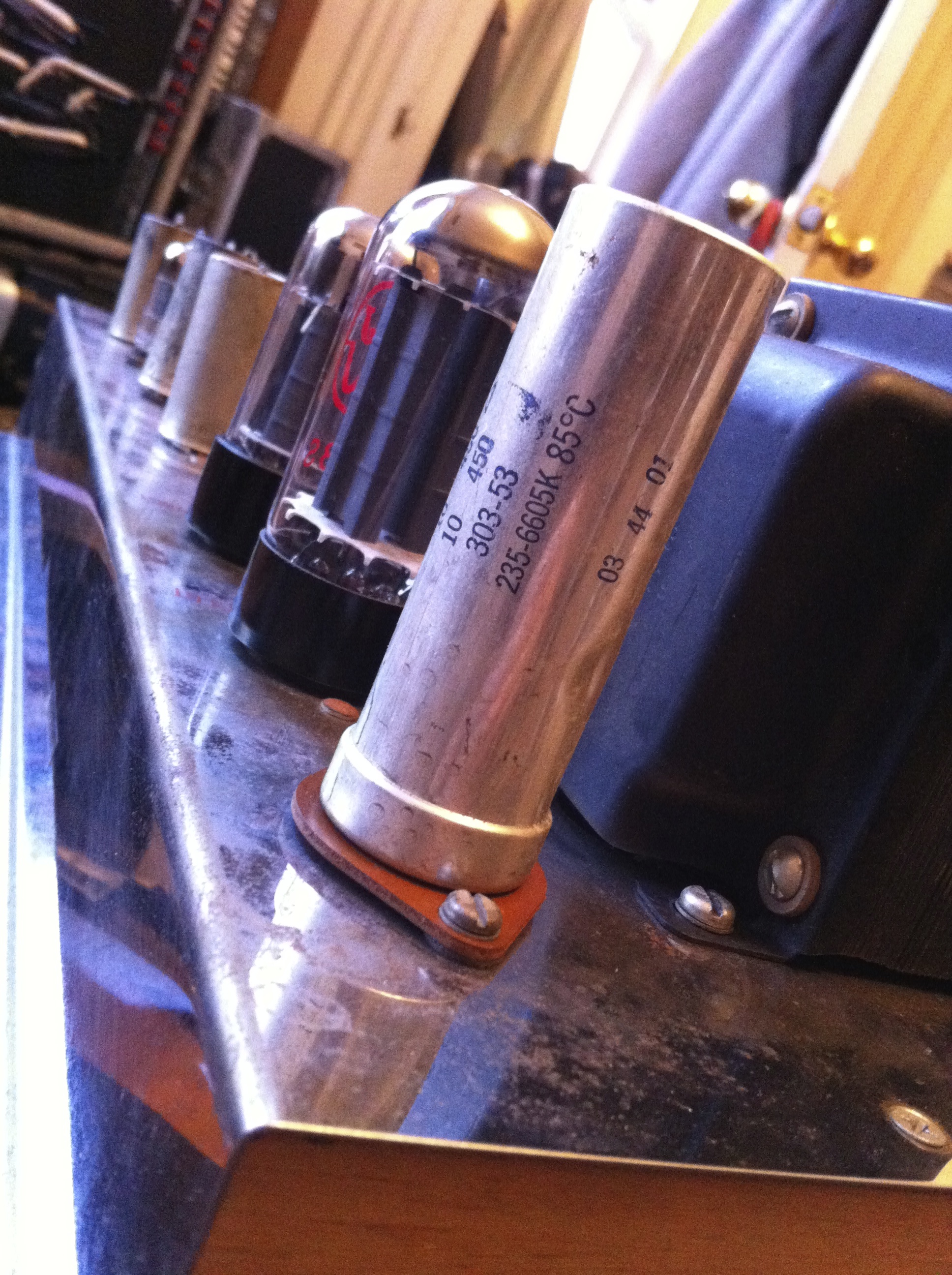 A capacitor in the power supply was disconnected, so the circuit was open, so the amp would not turn on. Aged electrolytics were replaced, old weak or noisy tubes were replaced and after biasing it sounded nice. Tremolo was great, reverb did not work and unfortunately was left unrepaired. The cardboard reverb tank is glued to the chassis and it was crumbling when I tried to remove it.