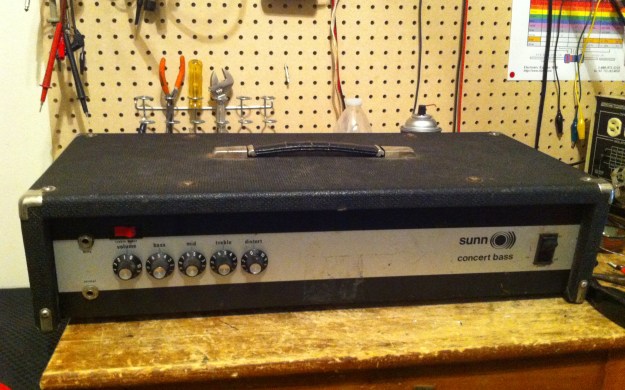 Early version of the Sunn Concert Bass. Seems like these earlier ones with the silver panel were 1972-74 and the red knobs started appearing in 1975.