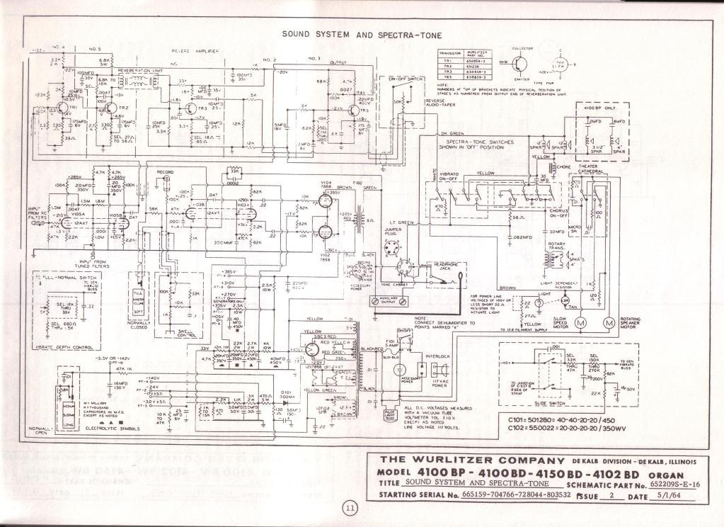 Old Wurlitzer organ a friend gave me some years back. Worked for a little bit, then needed a few caps in the power supply replaced to take away the distortion. As cool as distorted organ could sound, it just kept getting quieter and quieter the longer it was on until eventually it cold barely even play for more than a minute or two. Recently I decided to give it another look and I ended up finishing up the recap and any other original capacitors in the power supply and output section were replaced. The 4100A was made from 1959-1963 so they are very old indeed.