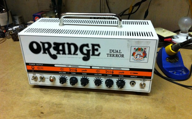Orange Dual Terror just had a broken input jack. This amp is switch-able for 7, 15, or 30W and it sounds pretty nice. As far as I know, it is basically just the big brother of the Tiny Terror, having two channels rather than one and having four EL84s in the output section for 30W instead of 15W for the Tiny Terror, which only has two EL84s