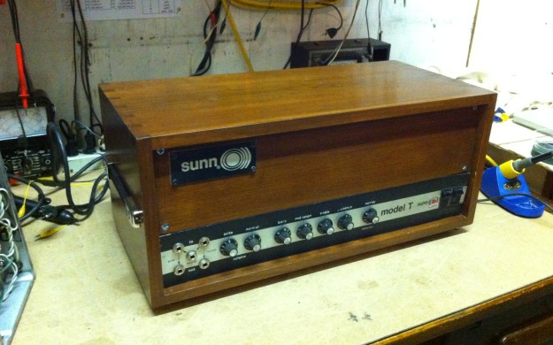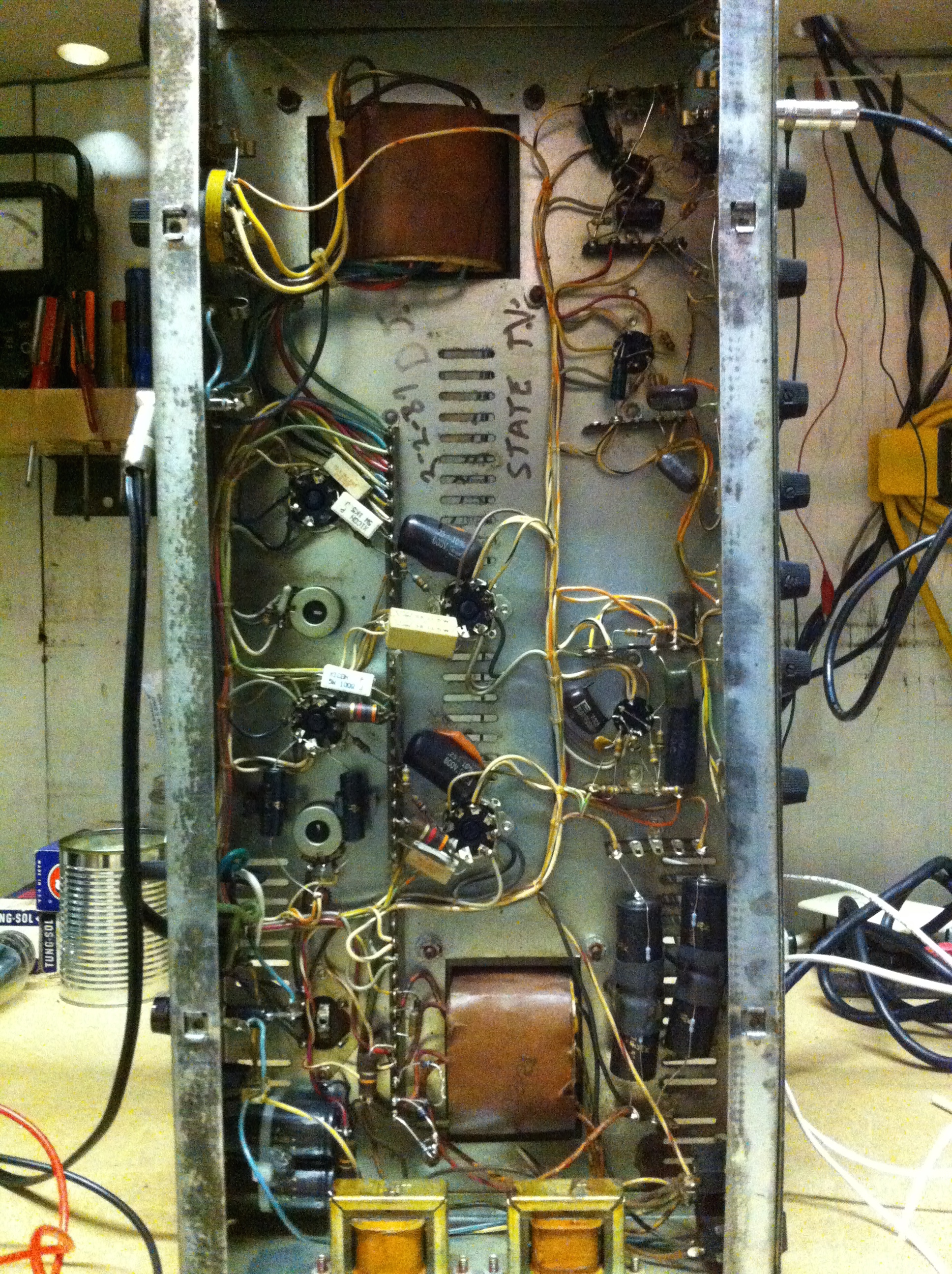 Chassis shot complete with State TV autograph from when they presumably serviced this amp in 1981 (or is it 1987?).