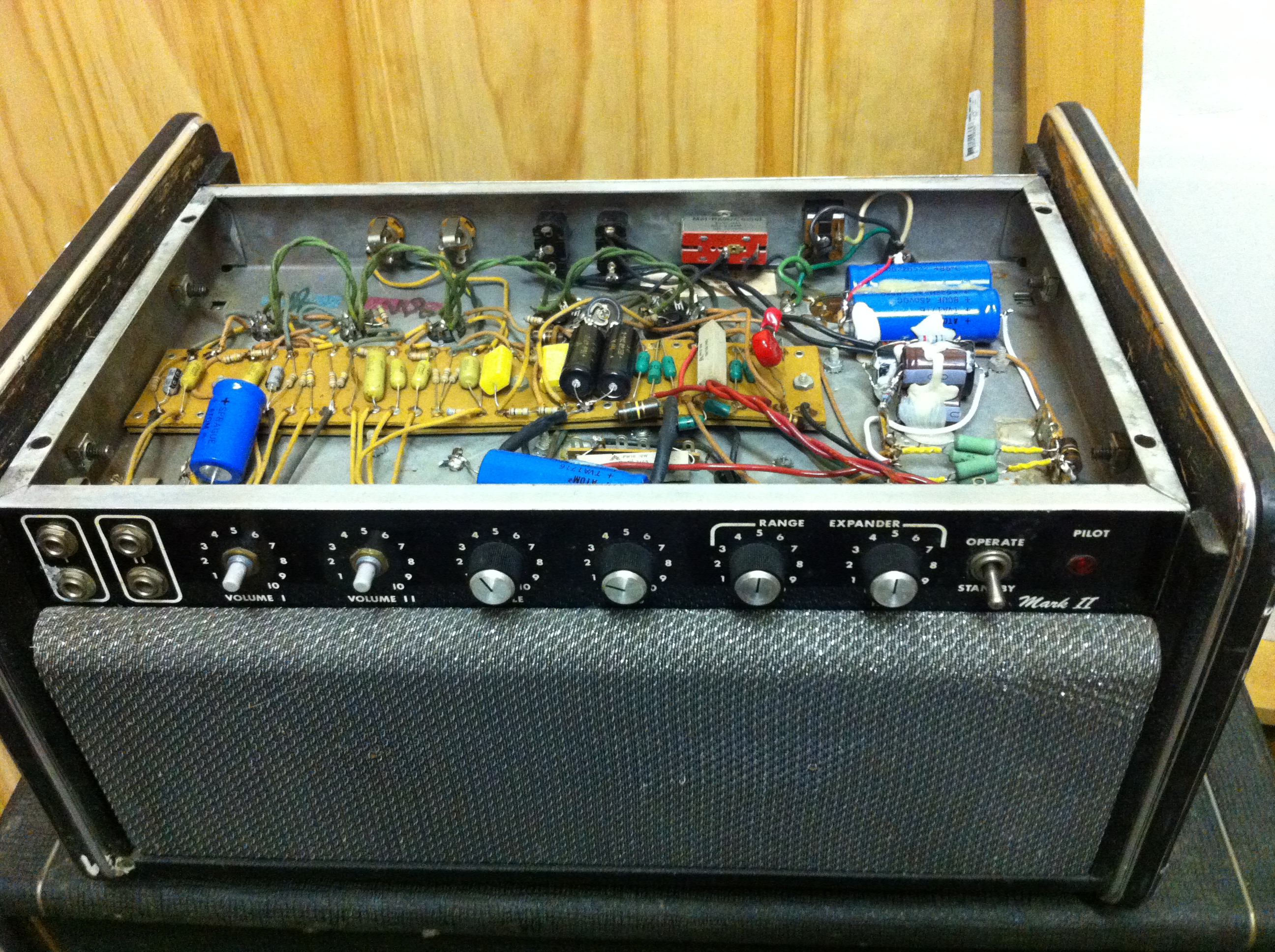Kind of a funny image since there are five different brands of electrolytics in this amp. Lots of people have had their hands in this over the years, Oh well. At least it works good and there are no more caps from the late 60s/early 70s still in use. This one has to be reliable, it is a studio amp at Bricktop Recording.