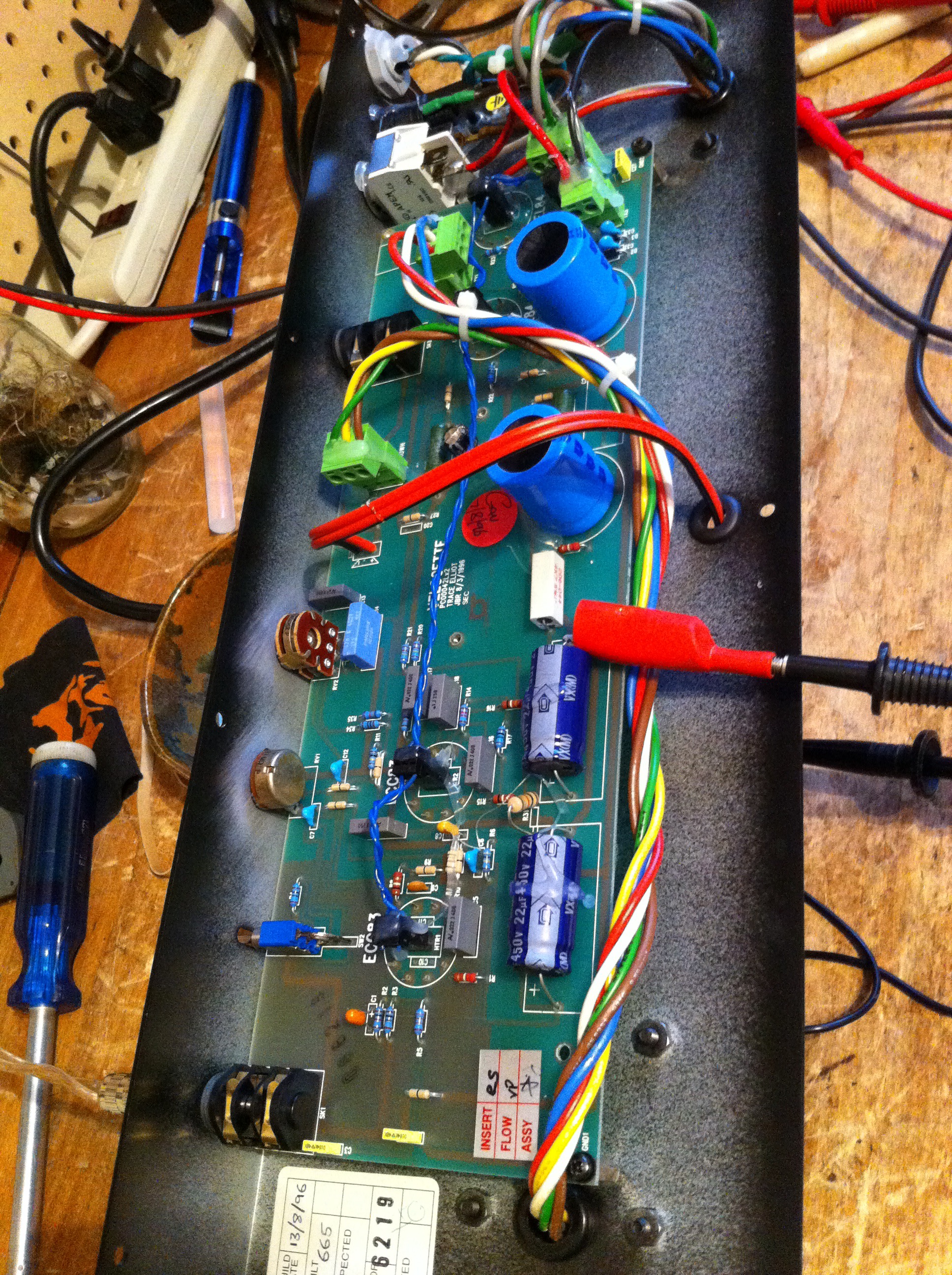 Using the old home lab to work on this little combo.It is a Trace Elliot from some time in the 90s. Just a simple little amp with volume and tone control only — two knobs.