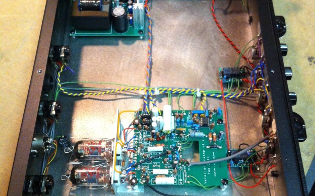 Basically just a little tube preamp with two 12AX7s. You can see the little power supply for them in the top left corner. I believe these never went into full production because they made it into a pedal instead. Sorry but no schematic for this one. If you have one please share.