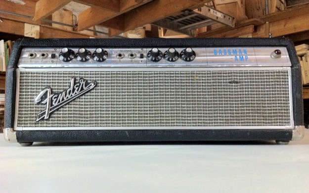 Fender Bassman in the drip edge fashion, with the metal grill going around the silver grill cloth. From around the 32nd week of 1967.