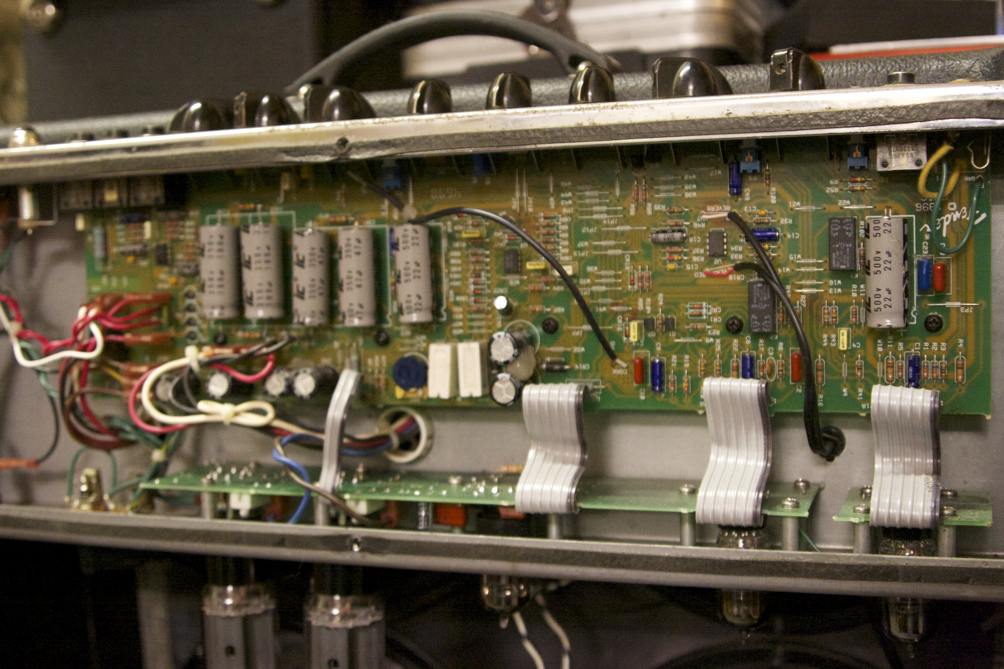 Whoops out of focus shot. New camera guess I didn’t use it well. If you don’t have to pull the board you are lucky because it is time consuming. All knobs and nuts that hold the pots in place must be removed to get the board out. Always good to search for cracked solder connections in these. You may find some.