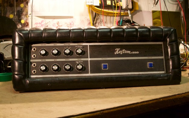 Kustom 250 bass amp with the tuck n roll. Not really sure why it’s called that. For me it did 98W at clipping, oh well.