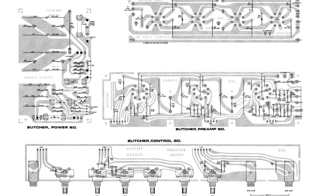 Really modular like a lot of Peavey designs seem to be. Main board in the middle is the preamp and phase inverter and has interconnect cables that go to the tone and volume pots. Board behind it in the back is for the output section and the PCB on the left has power supply and bias supply. There is no trimpot for bias supply so you either need to install one or adjust the R52, R53 voltage divider ratio when installing new tubes.