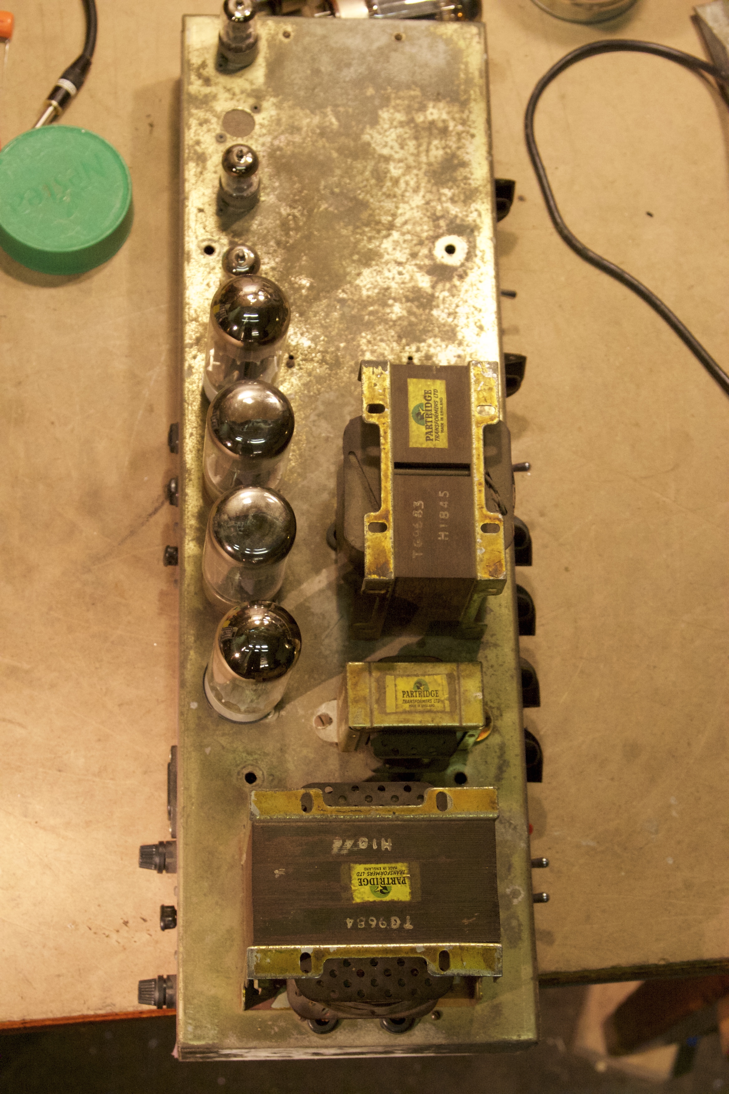 Two power tubes had blackened JJ logos and it would blow fuses after being on for a few seconds. One of the blackened tubes would intermittently short. Ditching the shorted KT77 and throwing in some old EL34 I saw bias was set around 95%. Not sure if this was just because the KT77 biased so different compared to the EL34 or if the bias drifted over the years. There is a tag inside the amp saying it was biased to 26.2mA 5/18/12 which would have been a better setting, Maybe it’s been messed with since. Plate voltage on this amp is in the 600V range.