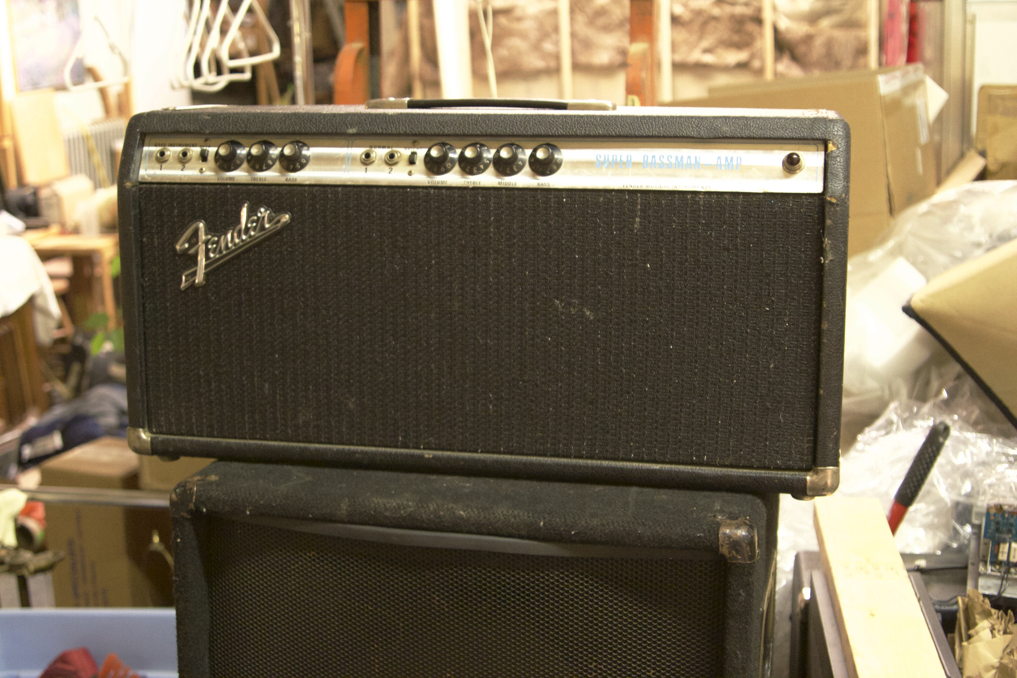Fender Super Bassman from the silverface era in the lab. Kind of an interesting Bassman because the B+ is only about 400V. Typical Bassmans are around 450-480V. Because the B+ is so low it only does about 70W at clipping. Can be kind of misleading at first since most Bassmans with four power tubes do around 100W.