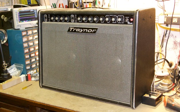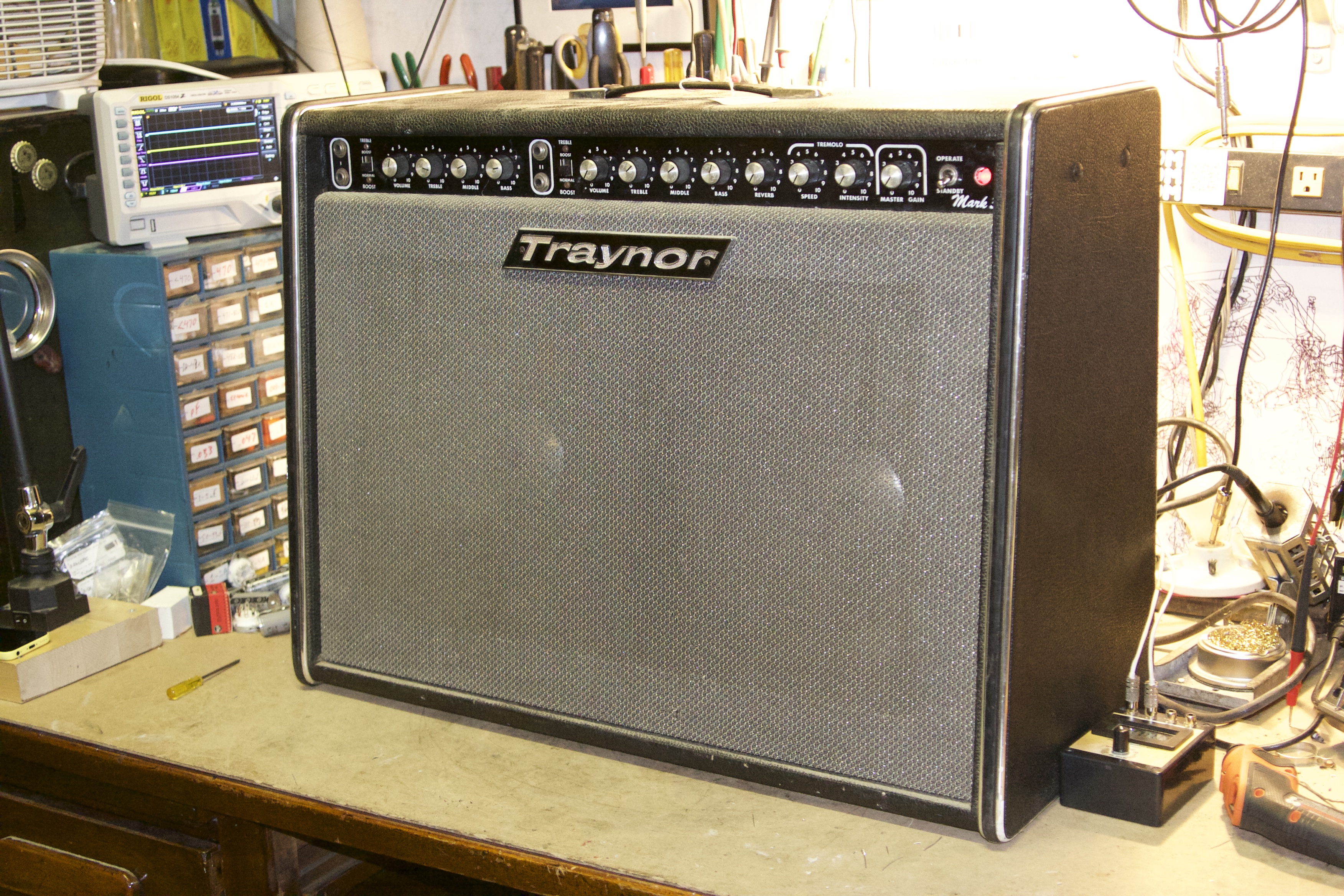 Alright cool old Traynor I believe from late 60s. Maybe a Twin Reverb competitor since it has reverb and vibrato on two channels, high and low inputs, treble boost, etc., the whole deal.