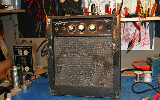 Kalamazoo Model Two which has been through the shit. Just a little 1×10 combo with tremolo. Seems to have even been underwater at some point. Oh well, it lives on. Very similar to Gibson GA-5T Skylark amp but with a few slight component value differences. Kalamazoo was a Gibson budget brand, more geared towards smaller practice amps.