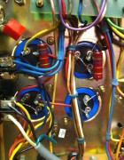 Inside the chassis is what you’d expect based on the external look, eyelet board and lots of braided wire in the Fender style of build. Grounds are haphazardly mounted anywhere on the chassis that’s convenient which is not a good build technique but I guess it’s worked good enough for many old amps over the years, and even this one too. Noise floor is not offensive and the amp works fine/normal in that regard. Build is pretty rugged, probably a bit better than your typical vintage Fender I’d say. The tremolo circuit is the bias modulating style so when it’s in use the bias voltage for the power tubes varies up and down for an amplitude modulation in the sound. Since the bias voltage is varying there is a bit of distortion you can hear because it’s biasing the power tubes momentarily very cold into a crossover distortion territory. It’s pretty easy to view on an analog oscilloscope. Anyway, a slight drawback of this type of tremolo circuit but I guess it has a good sound that people appreciate in other ways. Here’s a little article I came across that talks about it — Bias Modulating “Tremolo” Circuits.